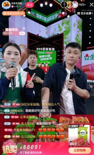近日,快手超头部主播太原老葛与国民香肠品牌金锣正式开启深度合作。在《全民心动》直播间,开播不到1分钟在线人数达到10万+。金锣多款经典产品以工厂直供价限量发售,多款单品瞬间售罄,用 “看得见的品质、算得清的优惠” 践行了 “为百姓寻找底价民生好货” 的承诺,成为普惠电商服务民生的又一标杆案例。