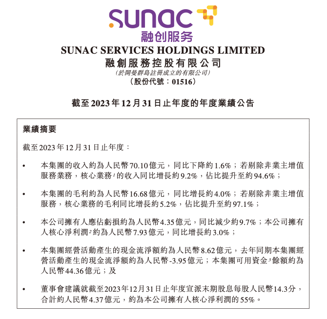 3月25日,融创服务控股有限公司(01516.HK)发布截至2023年12月31日止年度的年度业绩公告。