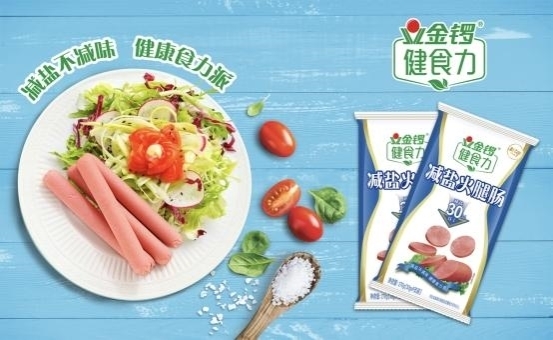 2021年初,针对“控盐”人群的肉制品消费需求,金锣健食力推出了减盐火腿肠。该产品精选优质原料肉,源头控制层层把关,在确保肉制品安全的同时,实现了对比同品牌其他产品减盐30%以上。同时采用国家专利技术动态滚揉和分段式杀菌工艺,保证产品的鲜香美味和筋道口感。